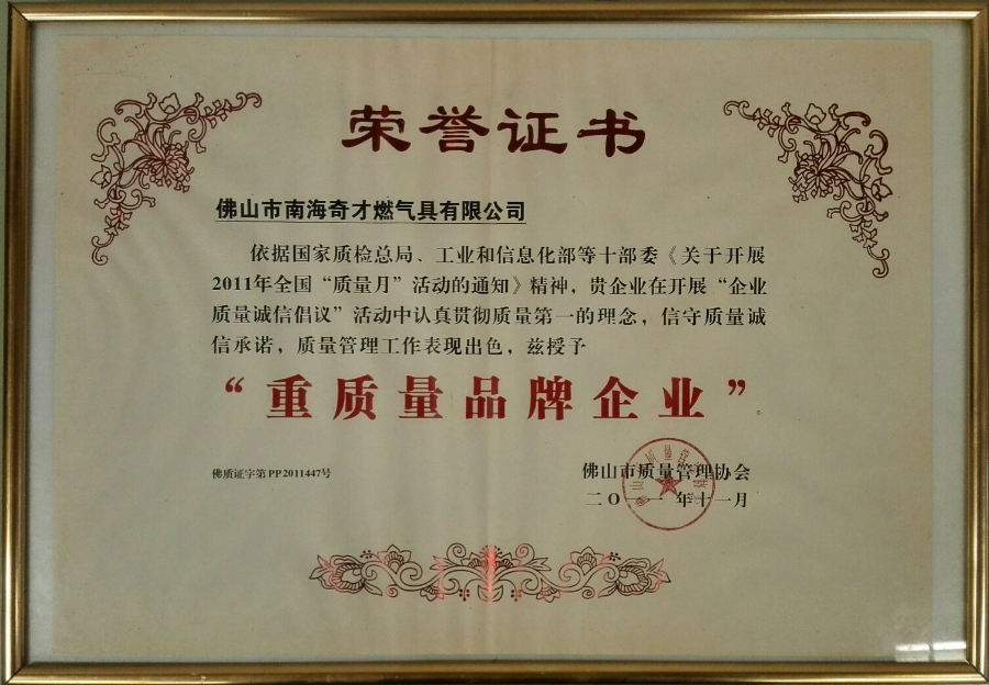 主頁 > 企業(yè)榮譽 > 企業(yè)榮譽 > 重質(zhì)量品牌企業(yè)證書